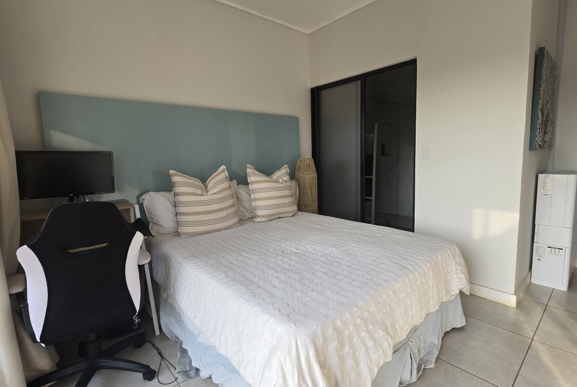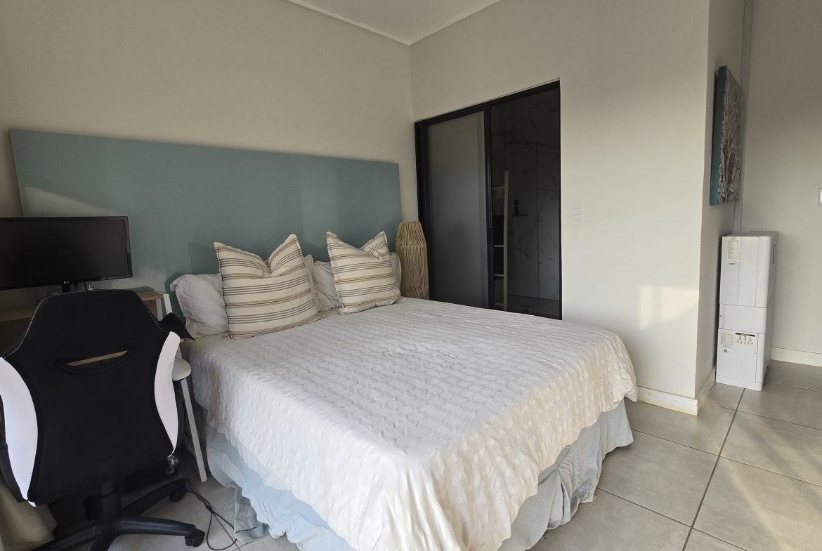 Three Bedroom Apartment in highly sought-after Umhlanga Rocks. Welcome to this warm and inviting apartment featuring an ope-plan, modern fitted kitchen, complete with a washing machine and fridge. The master bedroom boasts an excellent floor size, while another bedroom includes an en-suite bathroom. The third bedroom offers exceptional inland views. Security is paramount, with controlled access at the boom gate and highly sophisticated measures in place. This exceptional apartment is available for immediate grab as the owner is dis-investing.